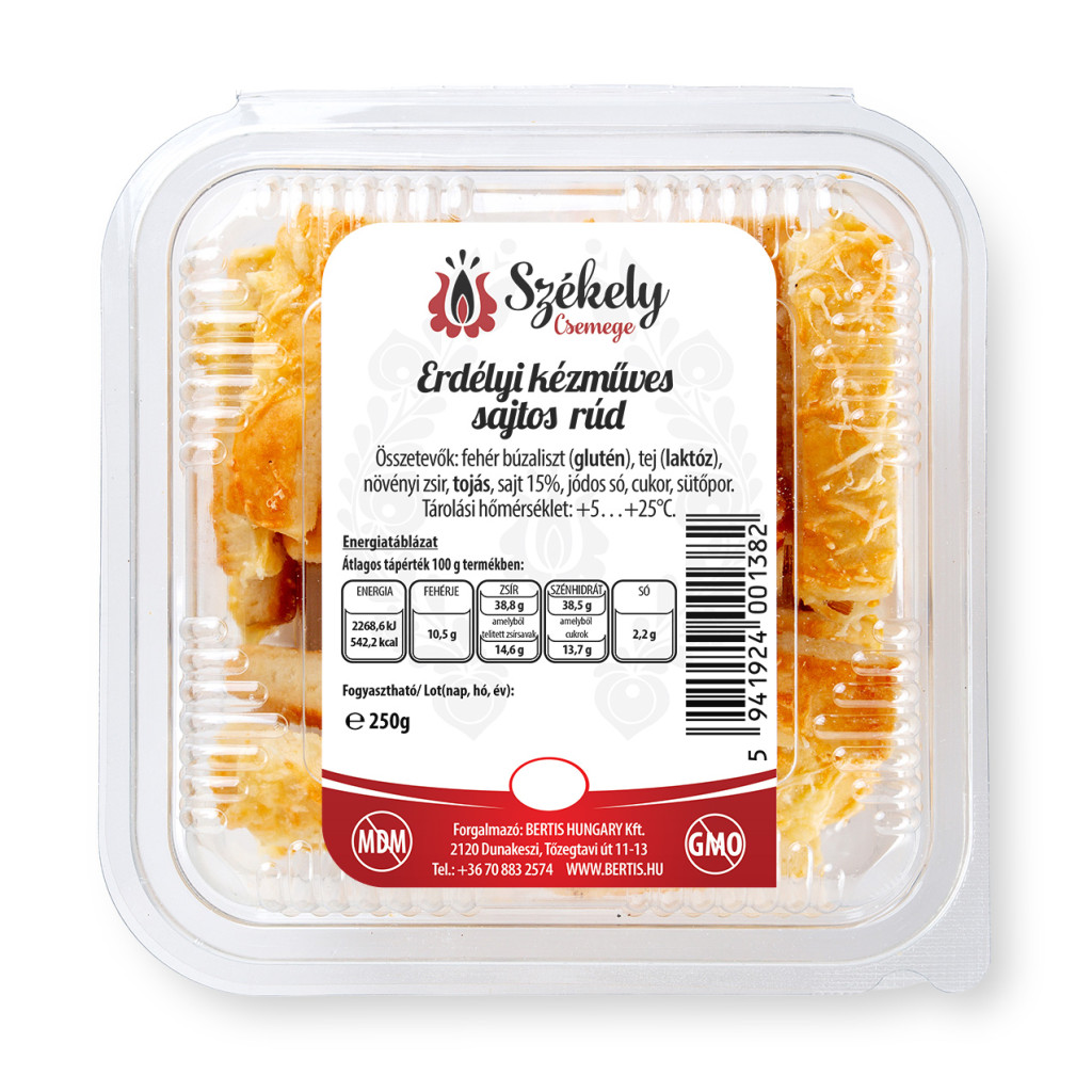 Az erdélyi kézműves sajtos rúd nem tartalmaz hozzáadott allergéneket* kizárólag glutént, laktózt és tojást.
