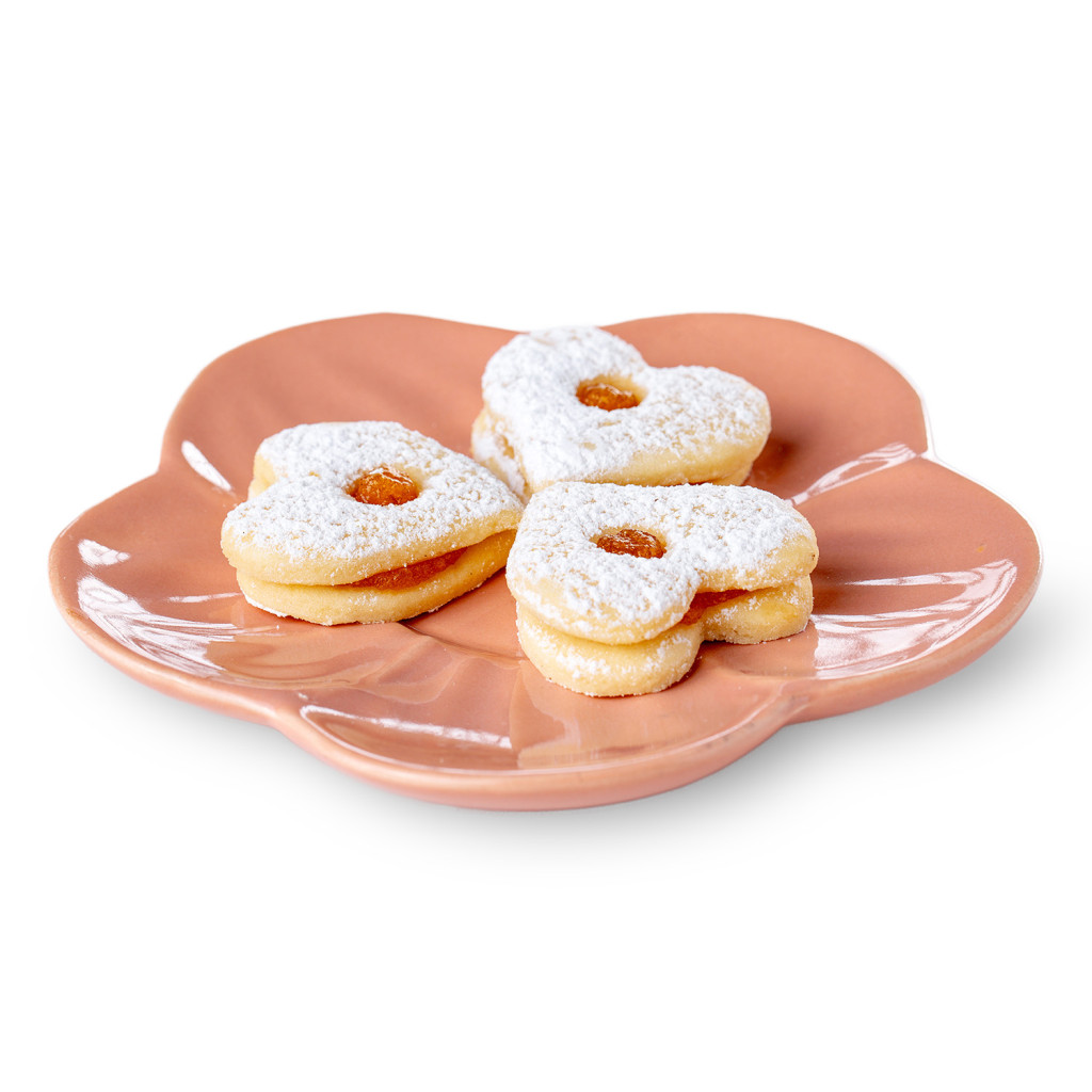 A kézműves baracklekváros szívecske nem tartalmaz hozzáadott allergéneket* kizárólag glutént és tojást.