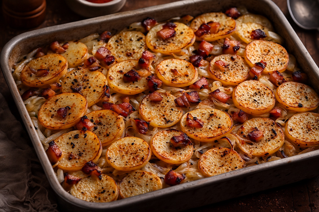 Téli tepsis krumpli kolozsvári szalonnával